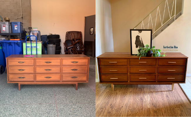 To see that grain come out, it made my heart so so happy!! Out with the batwing hardware and in with a new, more modern dresser 🥰