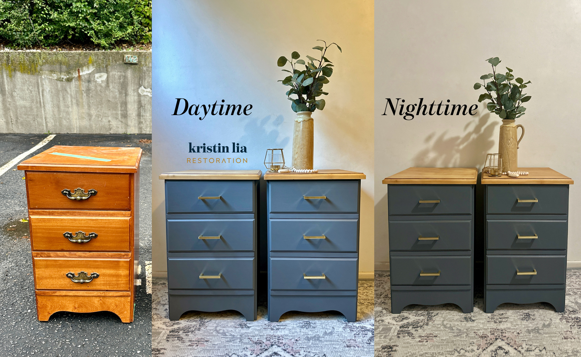 HERE ARE STEP BY STEP INSTRUCTIONS ON HOW I TRANSFORMED THIS SET OF VINTAGE MAPLE NIGHTSTANDS: